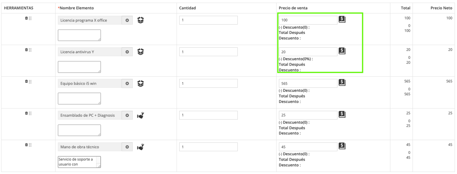 Si alguna vez se realiza una orden de venta, cotización o factura que incluya alguno de estos productos o servicios, se puede aplicar la TARIFA especial, por ejemplo, con cambios en los precios (más baratos o más caros) a estos productos y servicios que han sido seleccionados en la factura por ejemplo. Algo entendible sería: "Quiero un equipo para el aula 45, que nos falta pero como aquellos que te pedimos hace un mes".