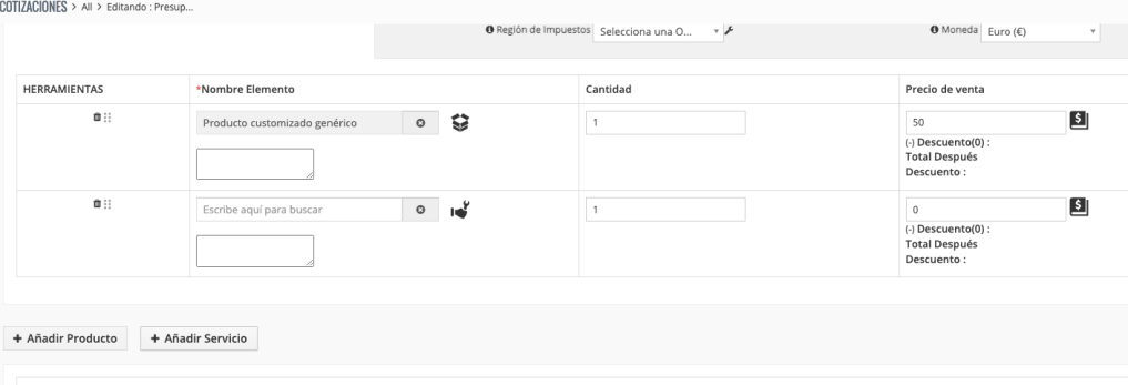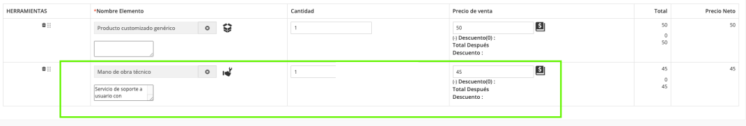 Uno de los aspectos importantes de servicios es que mientras se creen cotizaciones, facturas, órdenes de venta y órdenes de compra se pueden agregar servicios para incluirlos. Dentro de estos módulos se pueden seleccionar los servicios existentes para incluirlos, de la misma manera que ocurre con los productos.